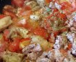 Spalati, taiati rosiile bucatele si adaugati-le la carne impreuna cu pulpa de vinete scursa.