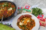 Curatam vanata, dovlecelul, le taiem cubulete si asezam intr-o sita, presam sare deasupra si lasam 20 min. Calim ceapa tocata in uleiul incalzit, adaugam condimentele si lasam cateva secunde dupa care adaugam vanata, lasam 2-3 min, dupa care adaugam dovlecelul, fasolea, ciupercile, 1 cana de...