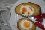 Cartofii ii curatam si ii punem la fiert in apa cu sare (cat sa intre furculita in ei). Ii scurgem de apa si ii lasam sa se raceasca La fel procedam si cu ouale, cand sunt gata le scurgem de apa si le lasam in apa rece dupa care le curatam Pe fiecare cartof adaugam cate 1 felie de bacon,...