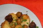 Cartofii se fierb in coaja cca 30 min(sa intre furculita in ei) Ii scurgem de apa si ii trecem pe sub un jet de apa rece. Cand s-au racit ii curatam si ii taiem in 2 si scobim la mijloc Ciupercile le spalam si le curatam,le fierbem cca 10 min Ceapa o tocam marunt si o calim putin,...