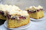 Ciresele le spalam si le scoatem samburi. Le asezam in tava tapetata cu hartie de copt. Albusurile le mixam cu un praf de sare pana isi dubleaza volumul, adaugam galbenusurile si mixam bine dupa fiecare. Adaugam uleiul si apa, faina amestecata cu praful de copt si coaja de lamaie. Amestecam...