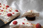Blat Biscuitii ii macinam cu robotul sau cu masina de tocat, adaugam zaharul pudra, untul topit si esenta de vanilie. Amestecam bine pana ce se omogenizeaza. Intr-o tava cu pereti detasabili, se pune amestecul si se taseaza bine cu o lingura, se da la frigider cat pregatim crema....