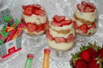 In pahare adaugam piscoturi care le-am inmuiat in cafea,crema de mascarpone,capsuni,piscoturi,crema si decoram cu capsuni.