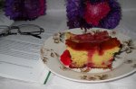 Intr-un bol mixam albusurile spuma,adaugam zaharul si mixam pana se topeste,adaugam galbenusurile,adaugam faina amesteca cu praful de copt si cernuta. Amestecam usor cu o lingura,adaugand treptat uleiul si esenta de vanilie Turnam compozitia in tava unsa si tapeta cu faina. Deasupra adaugam...
