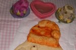 Ungem formele cu ulei si le tapetam cu faina si cu o lingura punem din compozitie