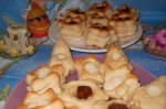 Intindem o foaie subtire pe care o vom taia in tringhiuri(eu fac cu o farfurie un cerc dupa care fac triunghiuri)