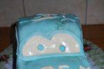Untul il mixam cu zaharul pana devine cremos,adaugam ouale cate unul mixand bine dupa fiecare,adaugam cacao si faina.