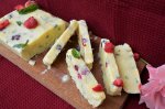 Intr-o cratita, turnam laptele, adaugam zaharul, amidonul, amestecam si punem pe foc, mixand continuu pana ce se ingroasa ca o budinca. O acoperim cu o folie si lasam sa se raceasca. Mixam frisca impreuna cu crema de branza, adaugam esenta de migdale, crema de lapte si fisticul. Turnam...