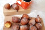 Intr-un bol, batem ouale cu zaharul pana ce se dizolva. Adaugam iaurtul, laptele condesat, praful de copt, esenta. Amestecam bine, dupa care adaugam treptat faina, pana ce rezulta un aluat mai gros ca cel de clatite. Intr-un ceaun, incalzim bine uleiul si, cu lingura trecuta prin apa rece, se...