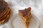 Biscuitii ii zdrobim, adaugam nuca macinata, zaharul, coaja de portocala, untul topit partial (adaugam treptat) si amestecam bine pana ce se omogenizeaza. Turnam compozitia in tava (eu am tapetata cu hartie de copt), nivelam si dam la rece 30 minute. Pregatim sosul de caramel. Intr-o...