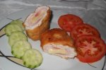 Pieptul de pui il spalam,il stergem cu un prosp de bucatarie si il vom taia felii ca pentru snitele,fiecare felie o vom inveli in folie alimentara si le batem cu ciocanul de batut carne. Amestecam sare,piper,busioc,cimbru si boia de ardei si vom condimenta carnea. Acoperim cu folie...