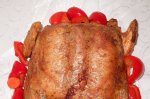 Pieptul de pui il spalam,il stergem cu un prosop de bucatarie si il taiem in 2, Intr-o farfurie adaugam pasta de tomate(amestecata cu putin apa)sos de soia,zeama de la portocala,sare,piper,busuioc,dupa gust si amestecam bine dupa care condimentam carnea, Adaugam intr-o tava(care o ungem cu...