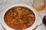 Ceapa o tocam marunt si o calim intr-o cratita in care am adaugat putin ulei, cand devine transparenta adaugam usturoiul posat. Lasam sa se caleasca putin impreuna dupa care adaugam carnea (spalata si taiata bucati) Lasam sa se rumeasca carnea si adaugam morcovii taiati rondele, ardeiul tocat...