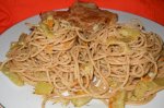 Fierbem spaghetele in apa cu sare conform instructiunilor de pe pachet,se scurg de apa si se trec pe sub un jet de apa rece, Carnea de pui o spalam si o taiem cubulete, Intr-o tigaie prajim carnea in putin ulei,scoatem carnea intr-o farfurie si o acoperim, Calim ceapa in uleiul in care...