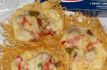 Intr-o oala adaugam apa si sare punem pe foc si cand incepe sa fiarba adaugam pastele,lasam sa fiarba timpul indicat pe ambalaj(cca 8 min). Le scurgem de apa si le trecem pe sub un jet de apa rece. Cu ajutorul unei furculite vom forma cuiburi lasand loc la mijloc, Adaugam ardeii(spalati...