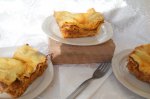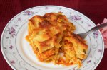 Sosul de carne - calim ceapa, morcovul, adaugam carnea si o lasam sa se caleasca cu ceapa, adaugam sucul de rosii, condimente si lasam sa fiarba, amestecand din cand in cand. Sosul bechamel -topim untul, adaugam faina si lasam cca 2 min amestecand continuu. Luam cratita de pe foc si adaugam...