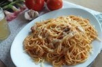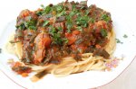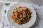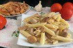 Pastele le fierbem conform instructiunilor de pe pachet. Intr-o cratita calim putin ceapa cu usturoiul, adaugam ciupercile feliate si lasam sa se prajeasca cca 5 min, adaugam rosiile tocate marunt, o cana de apa in care am fiert pastele, potrivim de condimente dupa gust si lasam sa fiarba cca...