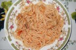 Am fiert spaghetele conform instructiunilor de pe pachet. Am fiert si cele 2 pulpe. Intr-o tigaie am pus un pic de ulei, ceapa tocata marunt, usturoiul tocat marunt, le-am calit un pic dupa care am pus un pahar cu apa, 3 linguri de pasta de tomate. Le-am lasat sa fiarba putin, dupa care am...