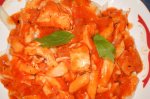 Spaghete cu sos de tomate si carne de pui