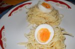 se fierb pastele in apa cu sare si un pic de ulei. se trec pe sub un jet de apa rece ouale se fierb 4 min dupa care se pun in apa rece usturoiul se curata si se taie in 2, se pune in tigaie cu un strop de ulei,se lasa putin sa se caleasca,dupa care se scot uleiul se amesteca cu...