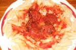 Ravioli cu carne tocata in sos de rosii