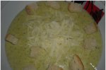 Se topeste o lingura de unt. Se lasa la calit bine: ceapa tocata fin si ciupercile, taiate in prealabil julien style. Dupa ce ciupercile nu mai sunt crude, se iau de pe foc si se piseaza cu blenderul. Pasta obtinuta se pune din nou la foc. Se toarna zeama de legume si faina sarea si piperul si se...