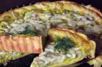 Pregatim mai intai aluatul. Din ingredientele enumerate framantatam un aluat pe care il dam la frigider pentru cel putin jumatate de ora. Punem aluatul pe blatul de lucru bine infainat framantam pana ajungem la consistenta potrivita si intindem o foaie rotunda. Punem foaia in forma de...